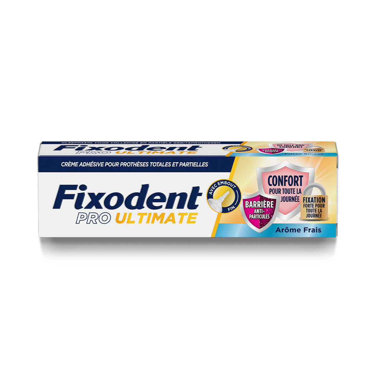 Empêche l'infiltration de particules alimentaires sous vos prothèses dentaires et les maintient en place toute la journée pour un maximum de confort.